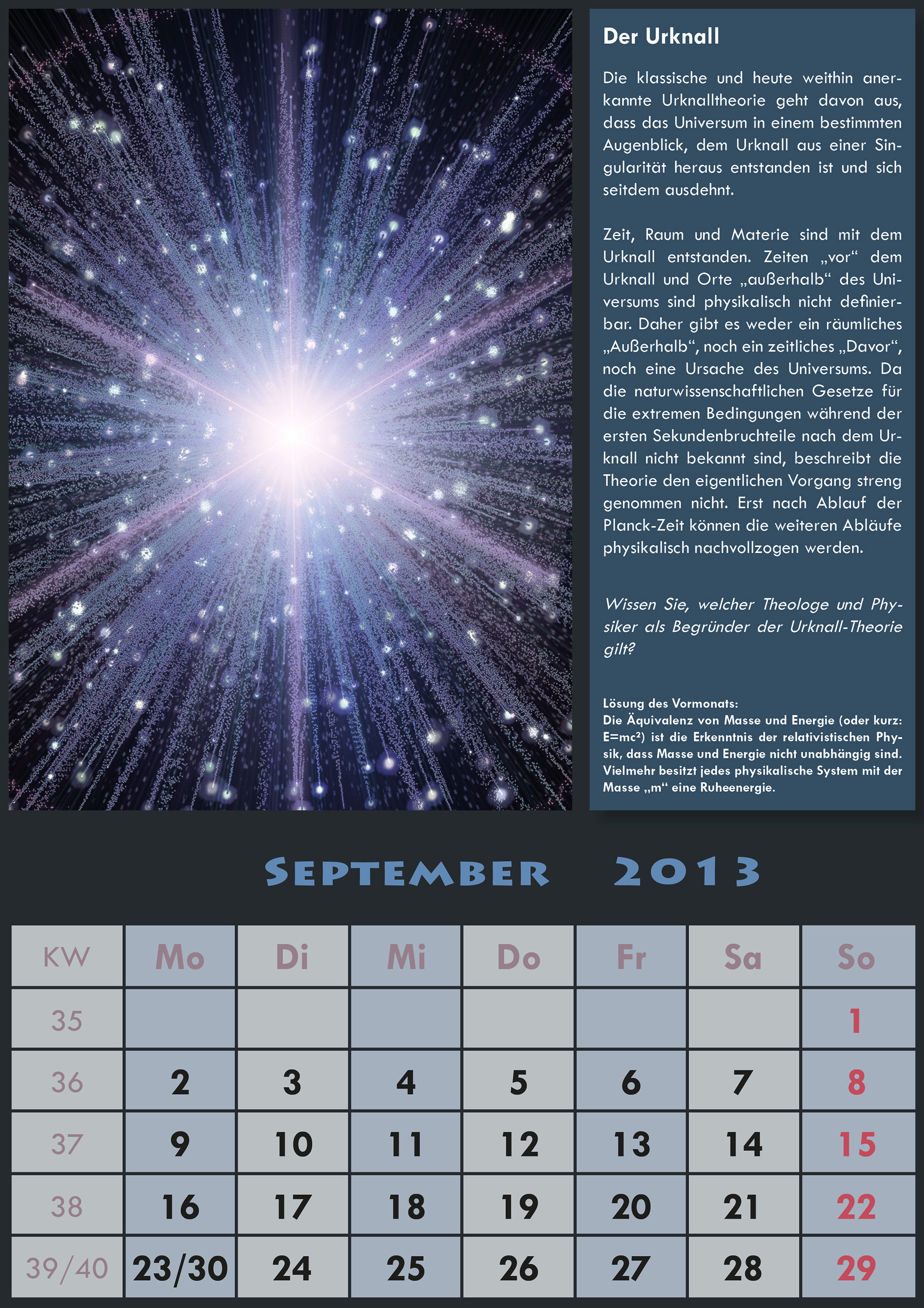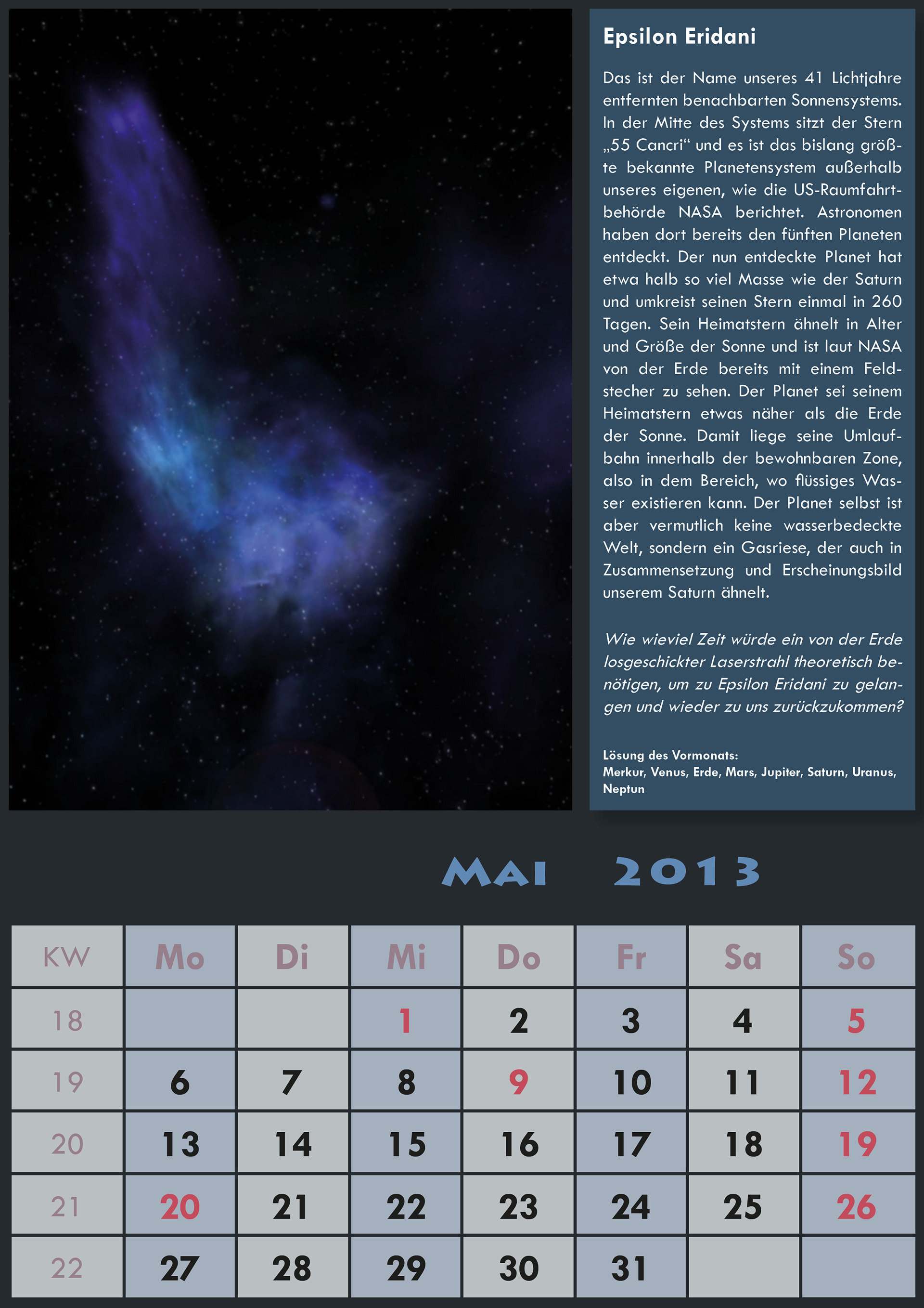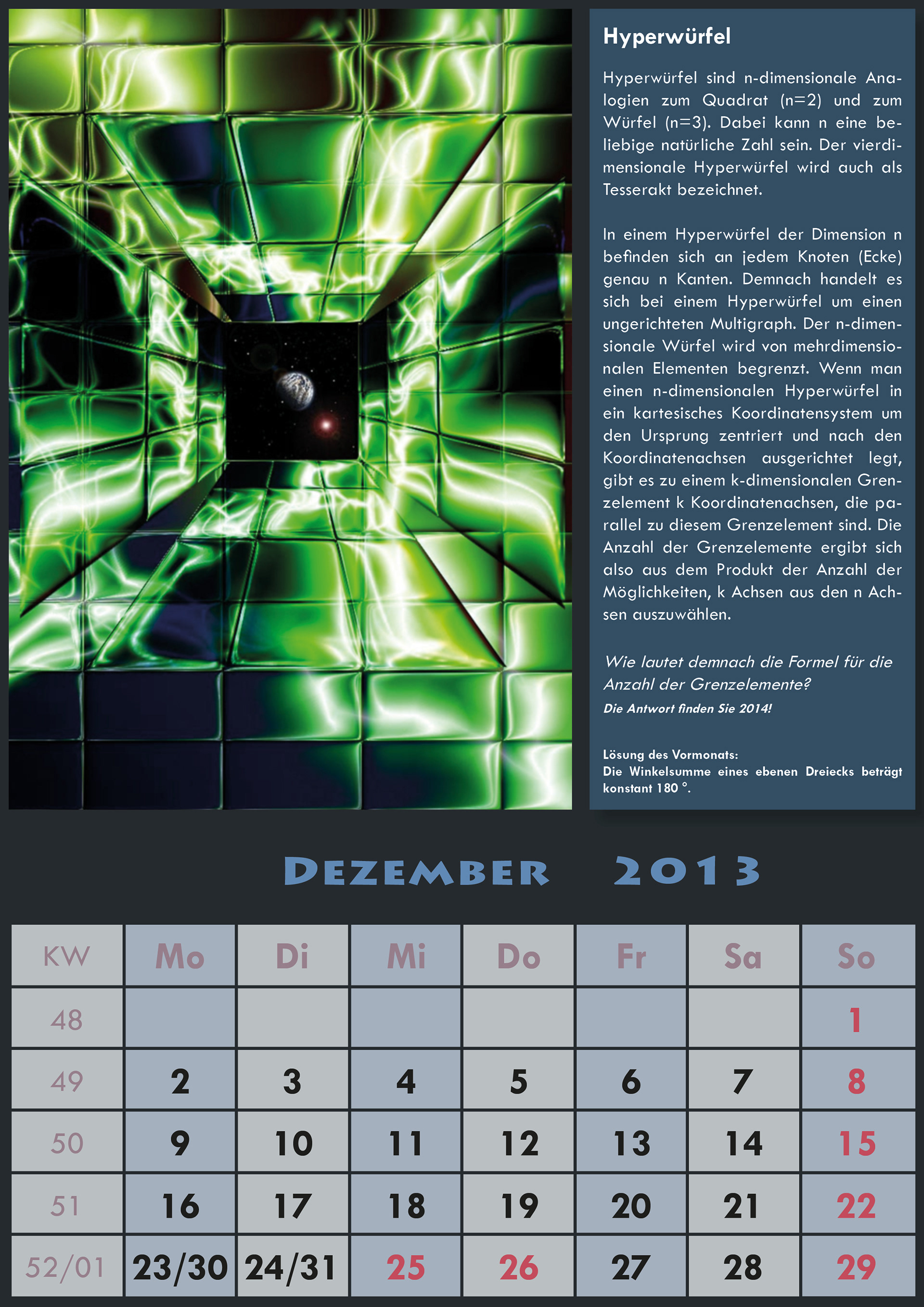 Vorgabe: Erstellen eines Kalenders "mit Zusatzfunktion".